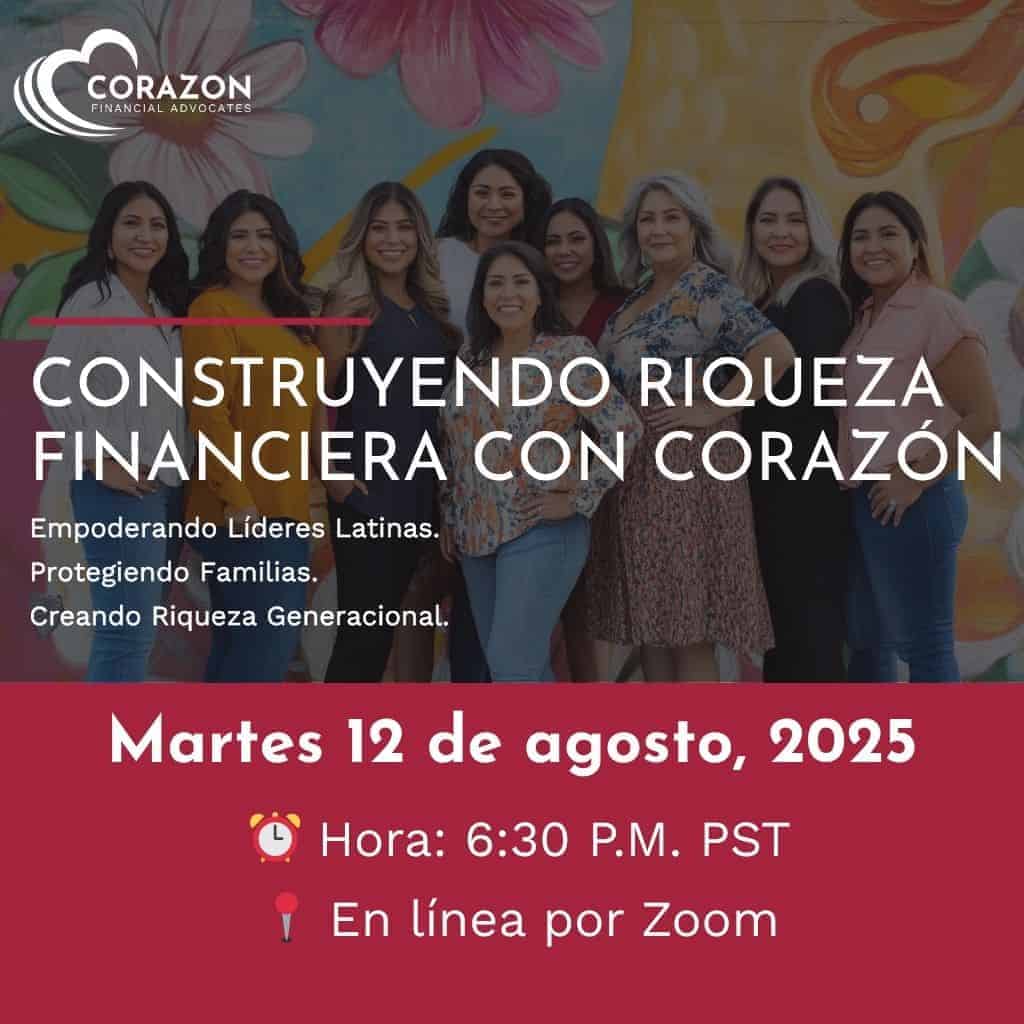 Events and Workshops Learn, Connect, and Grow with Corazón Financial Advocates Upcoming Events and Workshops Upcoming Events and Workshops No upcoming events. Check back soon! Construye Riqueza con Propósito: Sé Líder Financiera en Tu Comunidad Mentalidad Financiera Poderosa Descubre cómo pensar como una verdadera líder financiera. El Proceso de Planificación Financiera Aprende paso a paso cómo organizar tu futuro económico. Claves para Crear Riqueza Generacional Presupuesta, ahorra, invierte y protege lo que has construido. Cómo Empezar Tu Propio Negocio Conviértete en una defensora financiera con impacto real. Regístrate